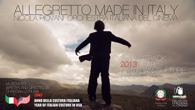 Una colonna sonora inedita per celebrare l’Anno della Cultura italiana negli Stati Uniti composta dal Maestro Nicola Piovani. Una partitura per orchestra sinfonica dal titolo Allegretto Made in Italy, interpretata dall’Orchestra Italiana del Cinema e realizzata con la collaborazione di: Ministero degli Affari Esteri, Ambasciata d’Italia e Istituto Italiano di Cultura di Washington, Ministero dei Beni e delle Attività Culturali e il Turismo – Direzione Generale per il Cinema, e ENIT – Agenzia Nazionale del Turismo. Il video è stato realizzato anche grazie al contributo di Sorgente Group, gruppo finanziario immobiliare specializzato in investimenti e fondi immobiliari e presente in diversi paesi d’Europa e negli USA.