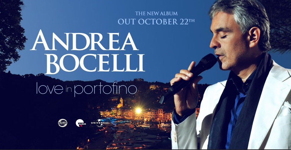 La voce unica di Andrea Bocelli, le musiche di alcuni dei più grandi artisti di sempre, tra cui Ennio Morricone, Elvis Presley, Fred Buscaglione e gli eccezionali duetti del tenore con Caroline Campbell, Jennifer Lopez, Chris Botti, Sandy e Veronica Berti: tutto in un unico progetto, in cd + dvd, dal titolo “Love in Portofino” in uscita in tutto il mondo il 22 ottobre.Il cd alterna le suggestioni dell’esibizione live ai brani in versione studio, mentre il dvd racchiude le immagini del concerto-evento che Bocelli ha tenuto a Portofino nell’agosto 2012, accompagnato al piano da David Foster e da un’orchestra di 40 elementi, davanti ad un parterre internazionale di assoluto prestigio composto da amici, colleghi ed estimatori come il Premio Oscar Michael Caine, Paul Anka e Ornella Muti.