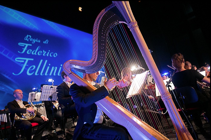 Nell’ambito della prestigiosa rassegna, la formazione di 60 elementi diretta da Daniele Belardinelli ha interpretato, in perfetta sincronia con le immagini dei film cult felliniani, una selezione delle migliori opere che hanno suggellato il sodalizio artistico tra il regista romagnolo e il compositore Nino Rota.