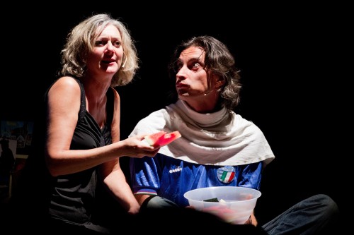 In fondo agli occhi è uno spettacolo di nuova drammaturgia che affronta le tematiche della crisi e della malattia da questa prodotta e derivata. L’indagine parte e si sviluppa da due differenti punti di vista: uno reale, in cui la cecità, malattia fisica, diventa filtro speciale attraverso cui analizzare il contemporaneo, e l’altro metaforico, in cui la cecità è la condizione di un intero Paese rabbioso e smarrito che brancola nel buio alla ricerca di una via d’uscita. Chi è più cieco di chi vive, senza avere un sogno, una prospettiva davanti a sé, di chi essendone consapevole, non può far altro che cedere alla disperazione? In scena una barista, Italia, donna delusa e abbandonata dal suo uomo, e Tiresia, suo socio ed amante, non vedente, raccontano la propria storia, i propri sogni mancati, le proprie debolezze e le proprie speranze in un bar, metafora di un paese dove: ” …non è rimasto più nessuno… perché ci vuole talento anche per essere mediocri…”