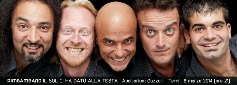 Rimbamband in “Il Sol ci ha dato alla testa” – 6 marzo: una delle formazioni meno convenzionali del panorama nazionale sarà la protagonista del secondo appuntamento con la scena musicale italiana. Insieme dal 2006 i Rimbamband sono cinque musicisti che mixano tutti i linguaggi possibili dell’arte e dello spettacolo: dalla musica al mimo, dal clown al tip tap, dal teatro di figura al rumorismo, fino alla fantasia teatrale e alla parodia, dando vita a uno spettacolo surreale, che si ascolta come un concerto e si guarda come un varietà; dove l’impossibile diventa possibile, il possibile improbabile, grazie alla musica, che viaggia anche al di là di essa, in un ritmo incessante e vibrante di energia.
