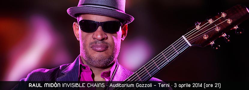 Raul Midòn in “Invisible Chains” – 3 aprile: èuna vera celebrità oltre oceano e arriva in Italia per stupire e incantare con il grande dono della sua voce.Nativo del New Messico, cieco dalla nascita, definito dal New York Times un one-man band, ha dedicato la sua vita ad abbattere gli stereotipi, solo con gli strumenti della sua voce e della sua chitarra, raggiungendo una fama internazionale. Ha collaborato con maestri come Herbie Hancock e Stevie Wonder, partecipando alle registrazioni di dischi di Jason Mraz, Queen Latifah e Snoop Dogg, oltre alla colonna sonora di Spike Lee “She Hate Me”. Nella sua musica si avvertono ispirazioni di Donny Hathaway e Richie Havens, Sting e Paul Simon, ma la sua musicalità lo rende, come ha scritto l’Huffington Post: un uomo libero da ogni categoria.