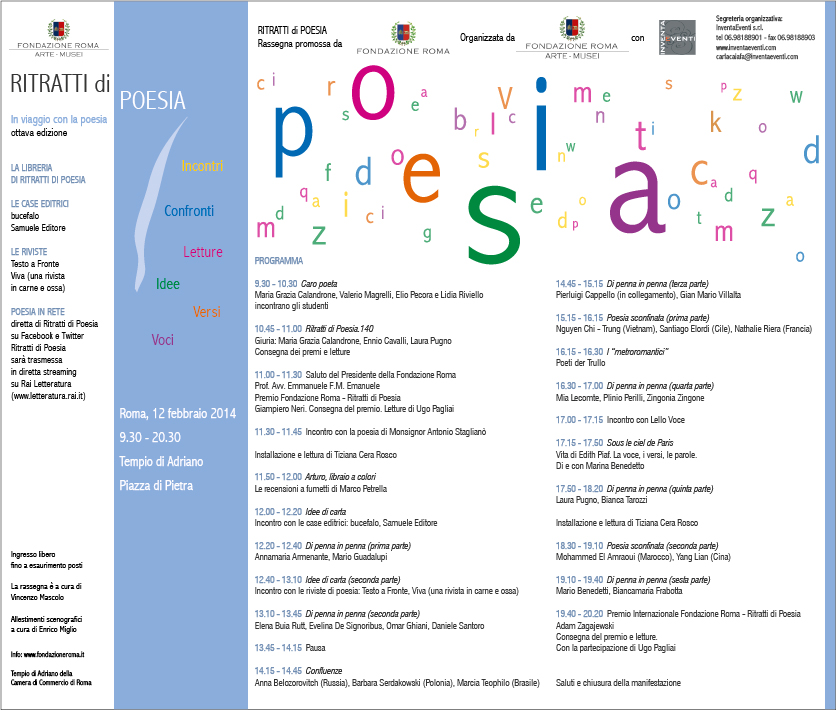 Ritratti di poesia, Edizione VIII: il12 febbraio 2014 al Tempio di Adriano di Piazza di Pietra a Roma
