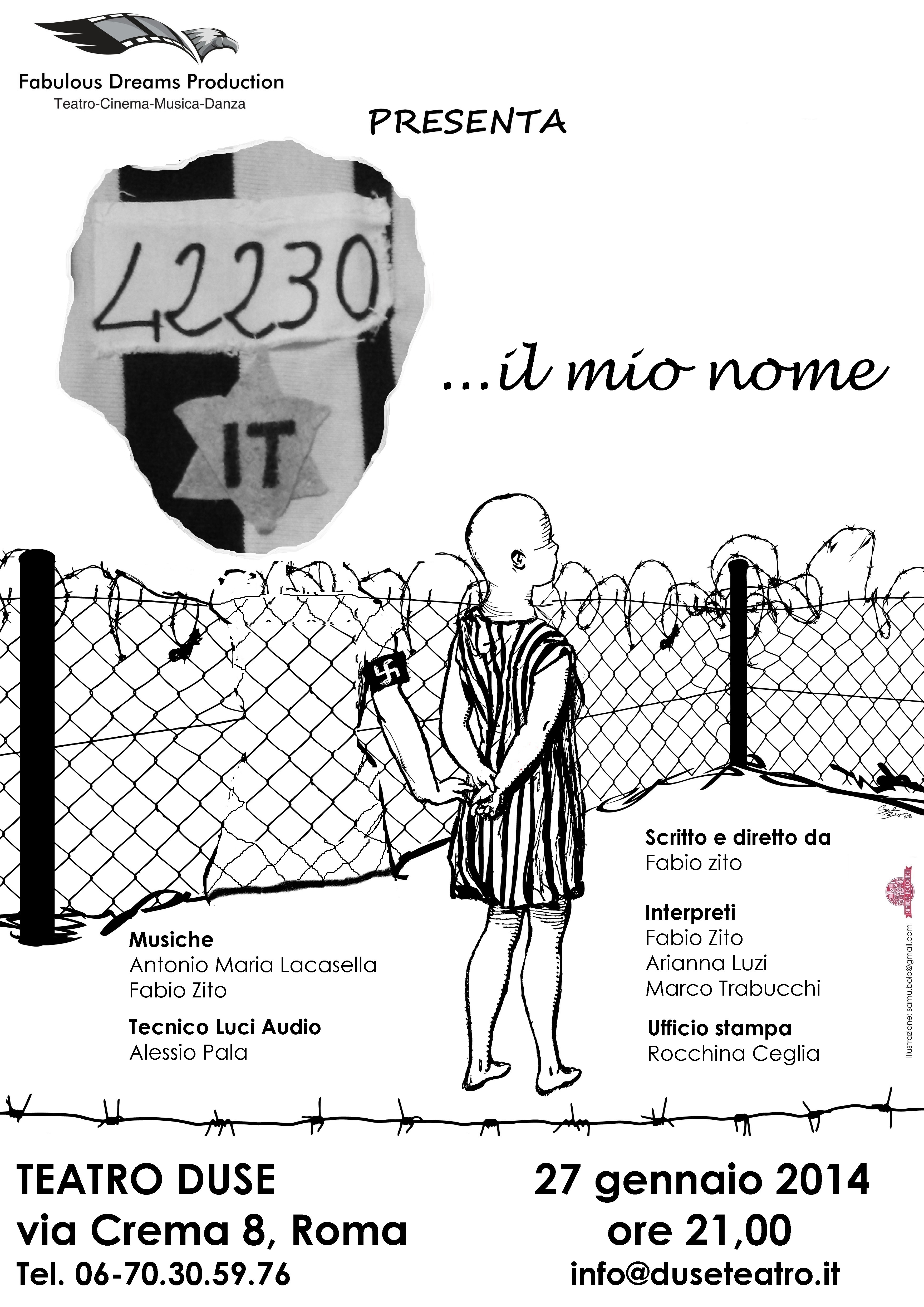 Lunedì 27 gennaio al Teatro Duse di Roma, Fabio Zito porta in scena 42.230… il mio nome. Il testo da lui scritto, diretto e interpretato vede sul palco Arianna Luzi e Marco Trabucchi.